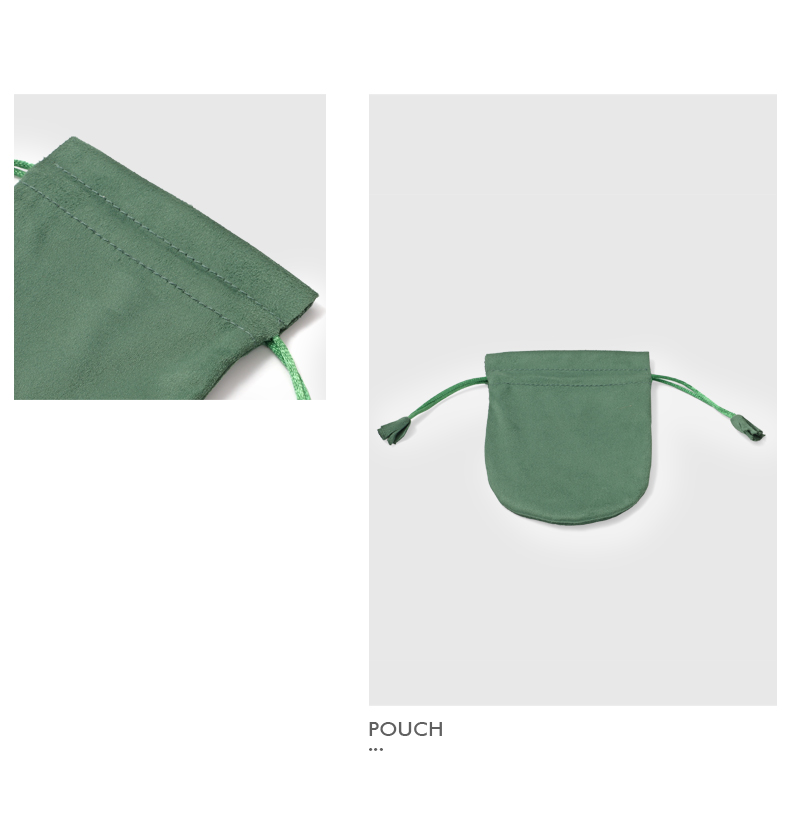 The pouch’s outer fabric is composed of ultra-soft microfiber material, selected for its anti-scratch, dust-resistant, and non-abrasive qualities. Its compact format fits a variety of jewelry types while keeping them safe and visually appealing. The double-drawstring closure adds security and completes the sleek design.