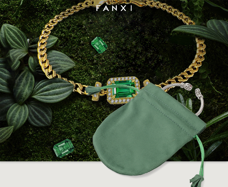 Contact us today to customize your FANXI Custom green microfiber pouch—perfect for wholesale jewelry packaging, luxury retail, and eco-conscious branding.