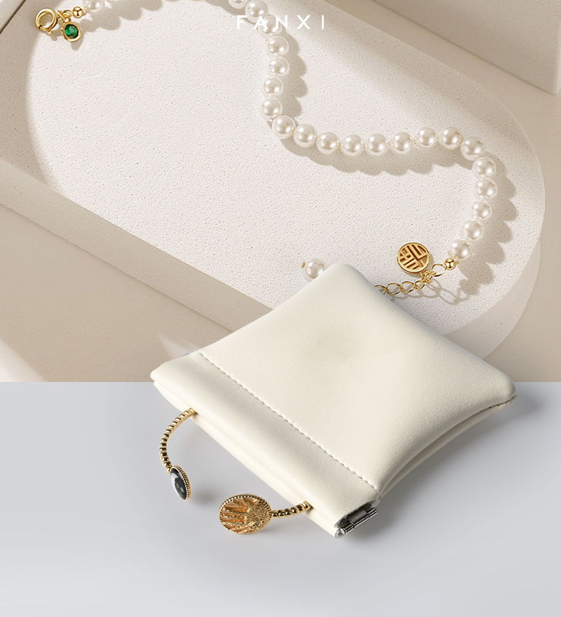 FANXI Custom White PU Leather Jewelry Pouch